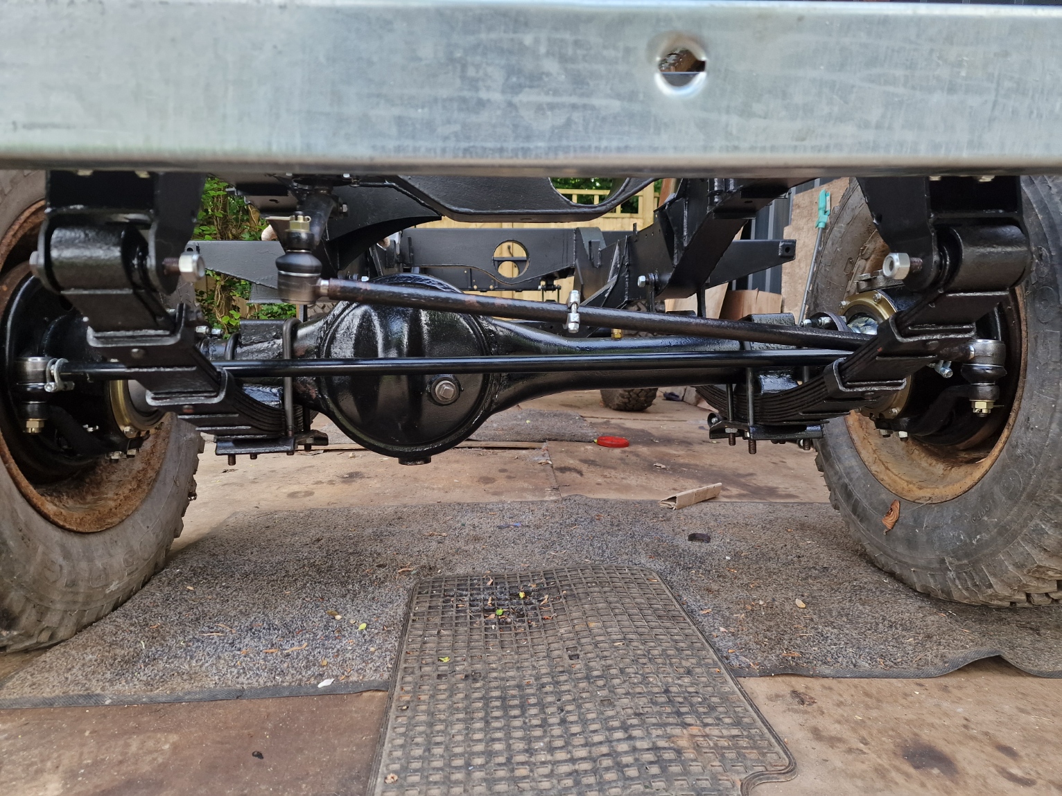 On goes the front axle, not without it challenges.