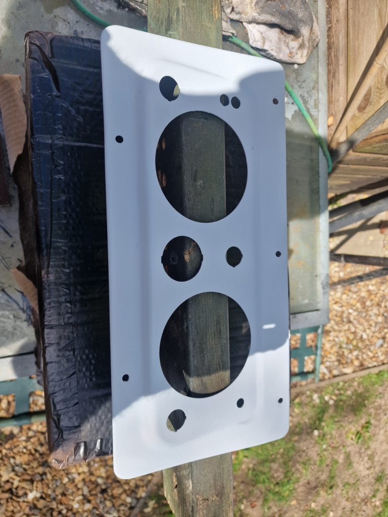 Related, I also bought a new dashboard, well second hand one, but a period correct one, so set about sorting that out and getting it painted, and populated with some stuff. Only a couple of pics of that.