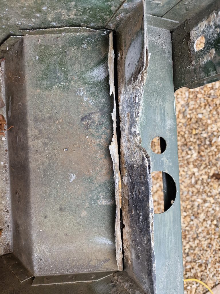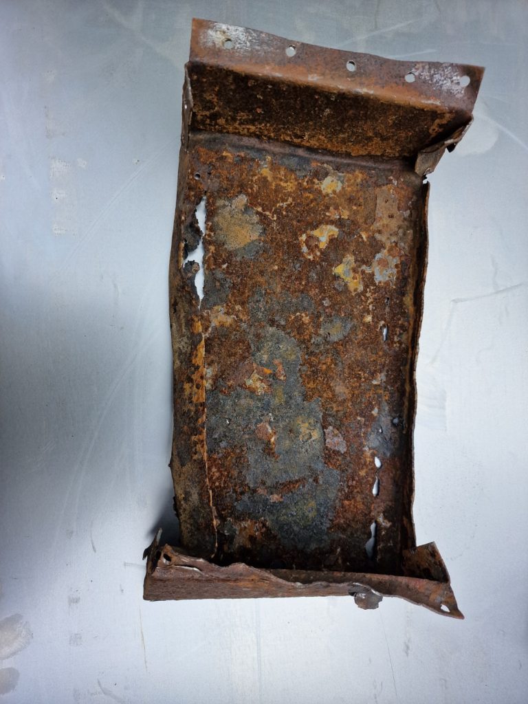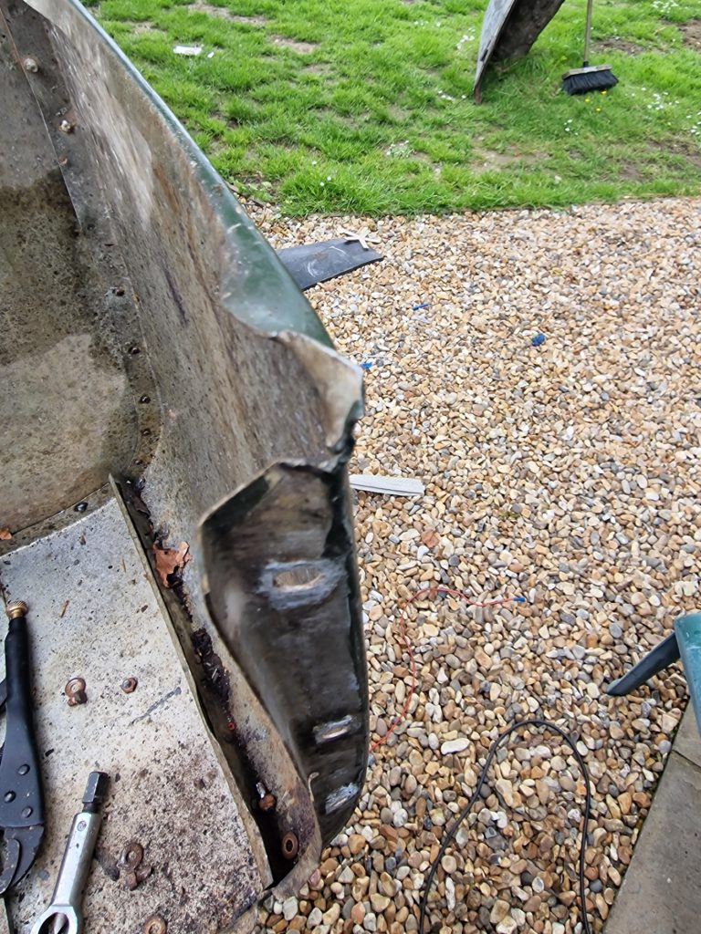 First, mud guard supports have corroded. The body panels are made out of Birmabright, which is a type of Aluminium. Aluminium doesn’t rot/rust! But… when in contact with another type of metal it does corrode as can be seen. They need fixing.