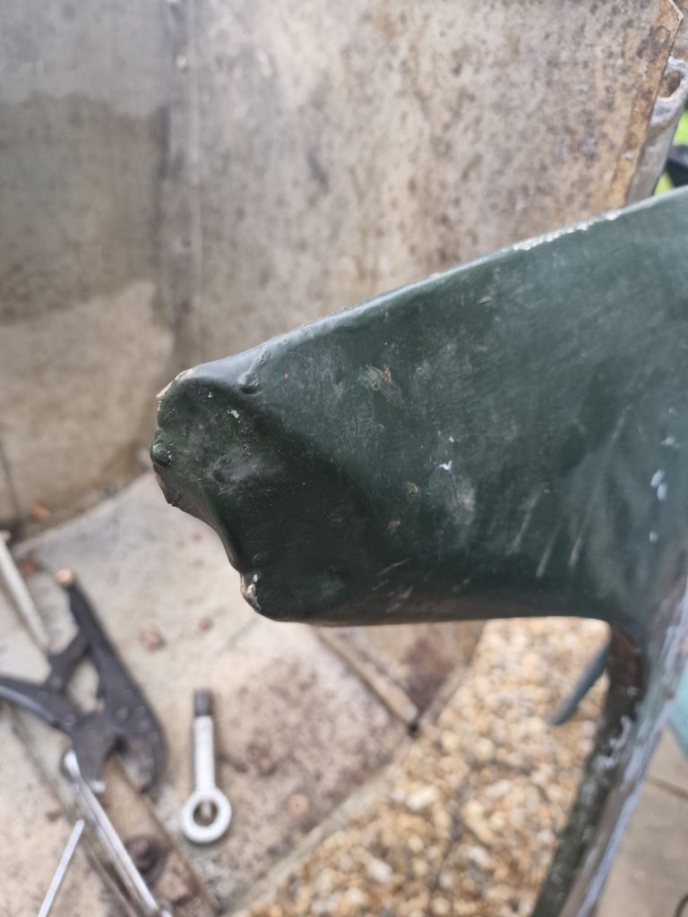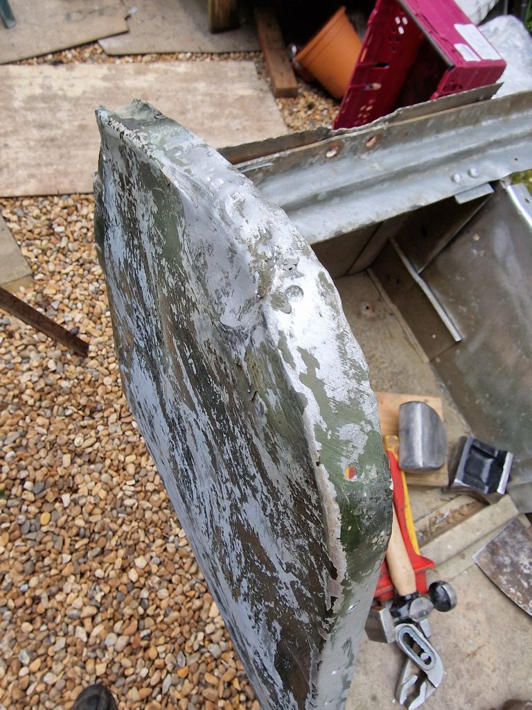 The only other options to doing this was to buy new tub panel… expensive, or get a proper panel beater, also very expensive, so will see how this turns out later when painted.