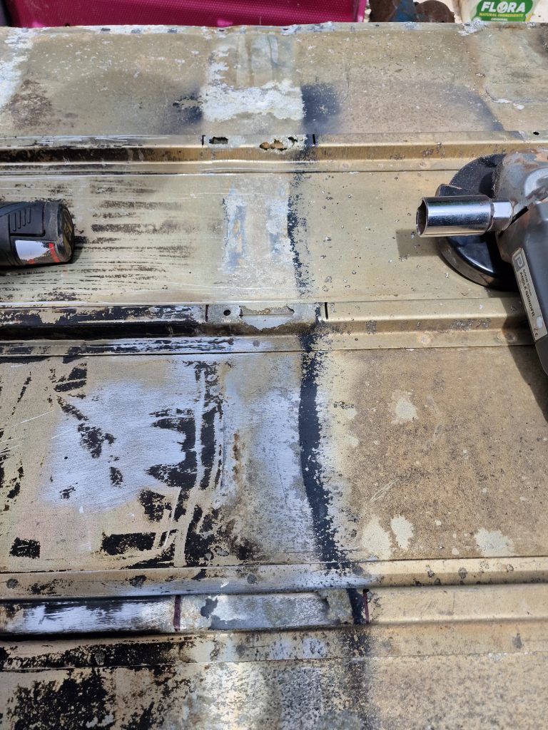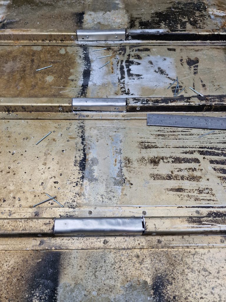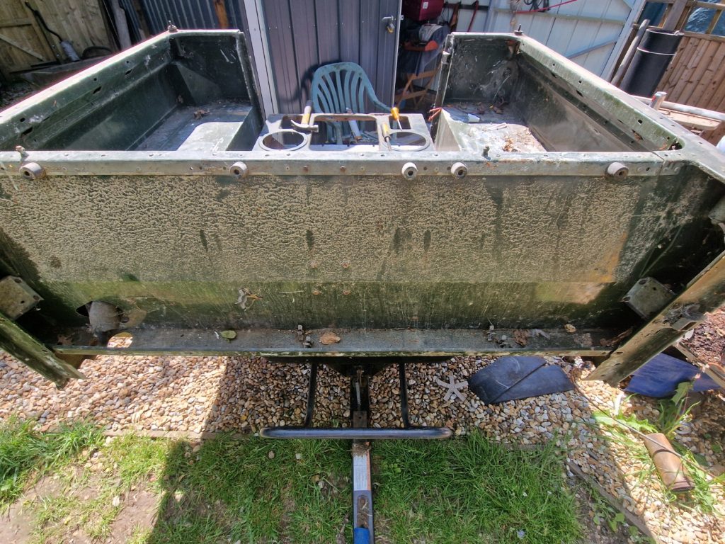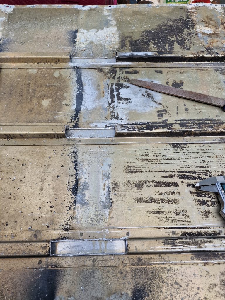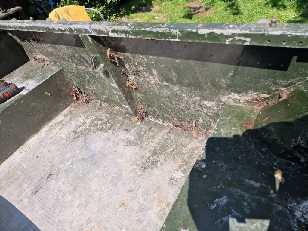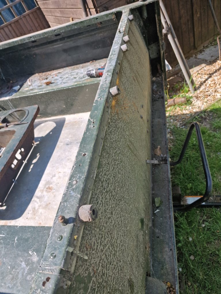 Last issue with the tub, for now was the floor. Will keep this one simple. basically there are 3 supports that help support the floor, These supports are steel, the floor is aluminium, hence the corrosion of the middle support. the corrosion was cut out, strips of aluminium were cold-welded and riveted in and a piece formed to sit over the top, which was also cold welded and riveted on.