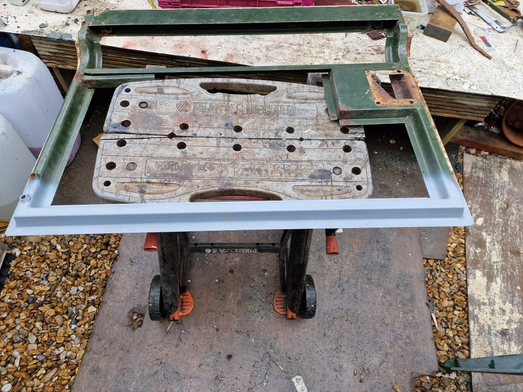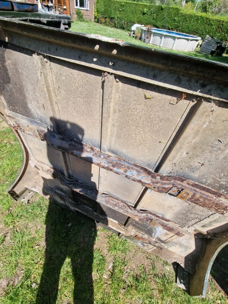 The bonnet is in pretty good shape, so only intended to remove the spare wheel carrier on the top, which I did, but when I looked at the framing underneath and started to clean it up a little, lots of holes appeared, so that comes off to be repaired.
