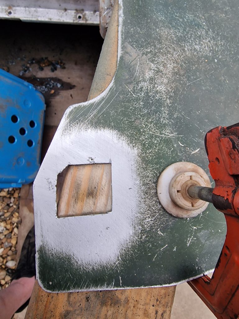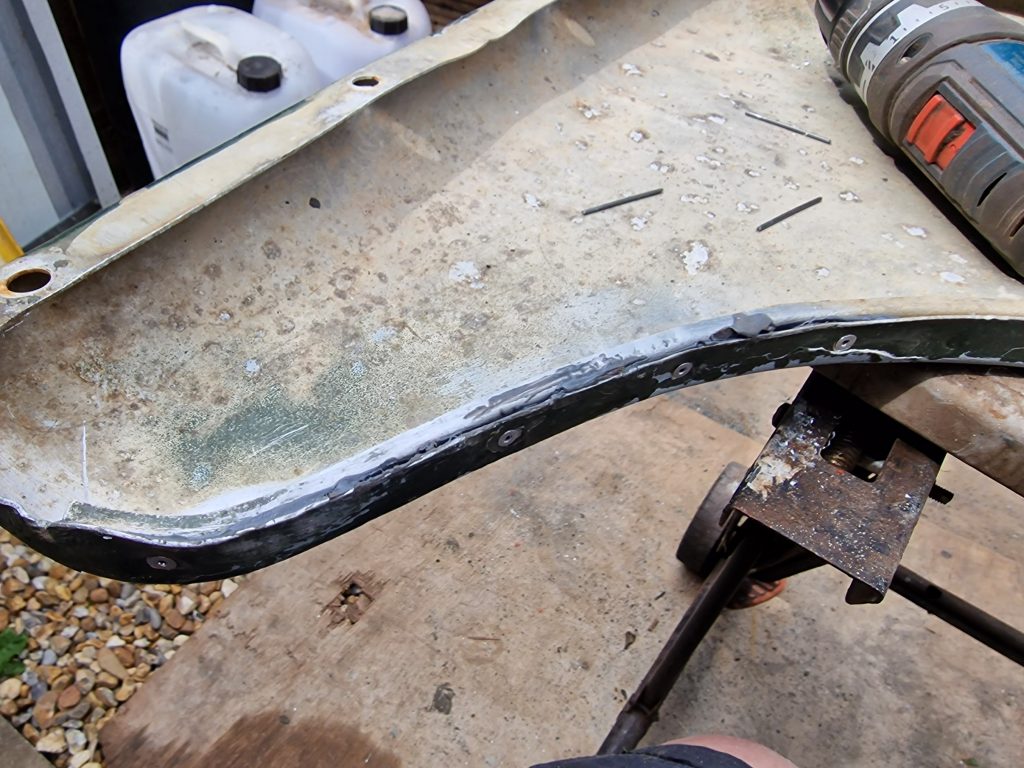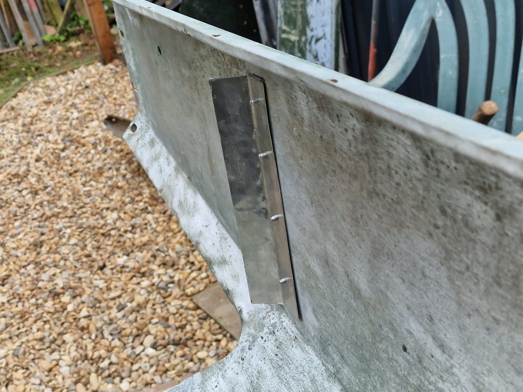 Excuse the finger nails, need a trip to the Nail shop to get them sorted. Anyway, for the rear two, created a patch to slot into the cut out area, and sit behind the panel. These were cold welded in, not rivets as they are visible.