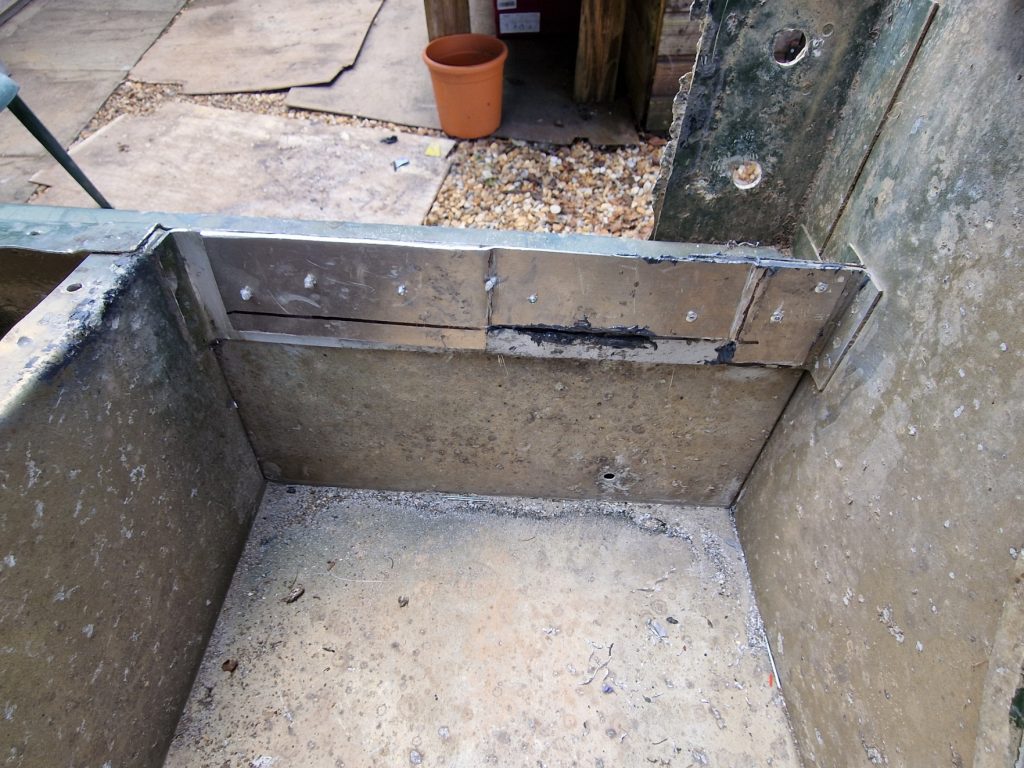 For the front, did the same thing with the thicker material and also for one side inserted two other pieces where they were corroded. Also, the front two were riveted for added strength.