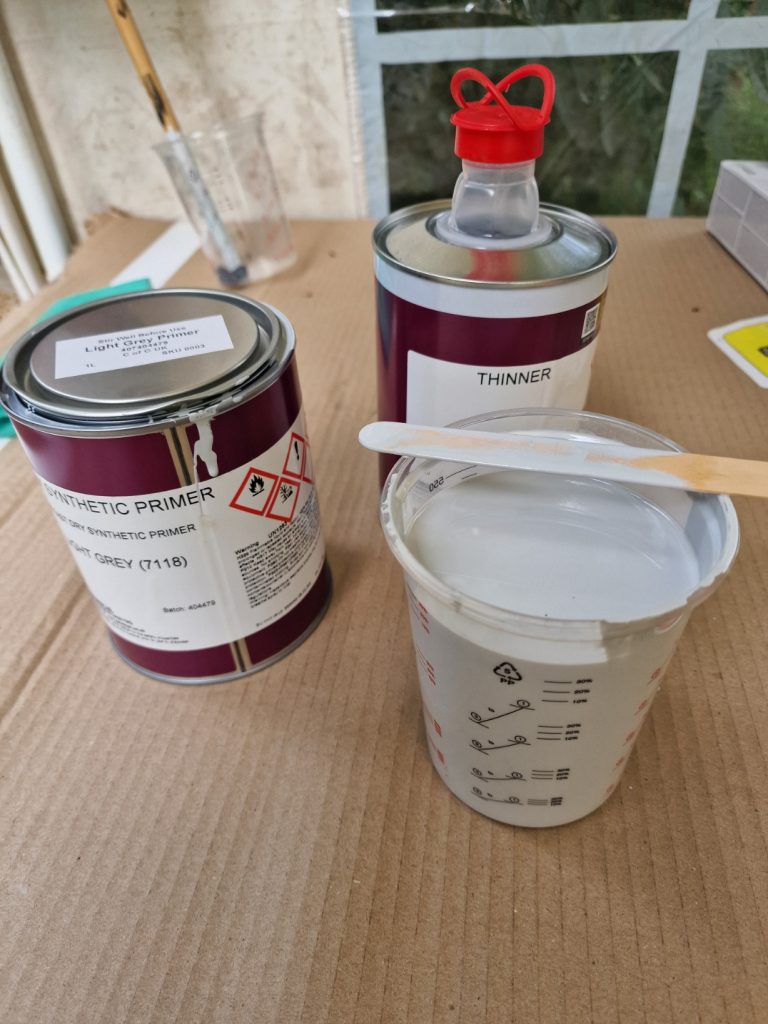 Mixed up some paint and set about spraying, again Thinned to about 10% and increased Air Pressure, upto about 30psi at the gun.
