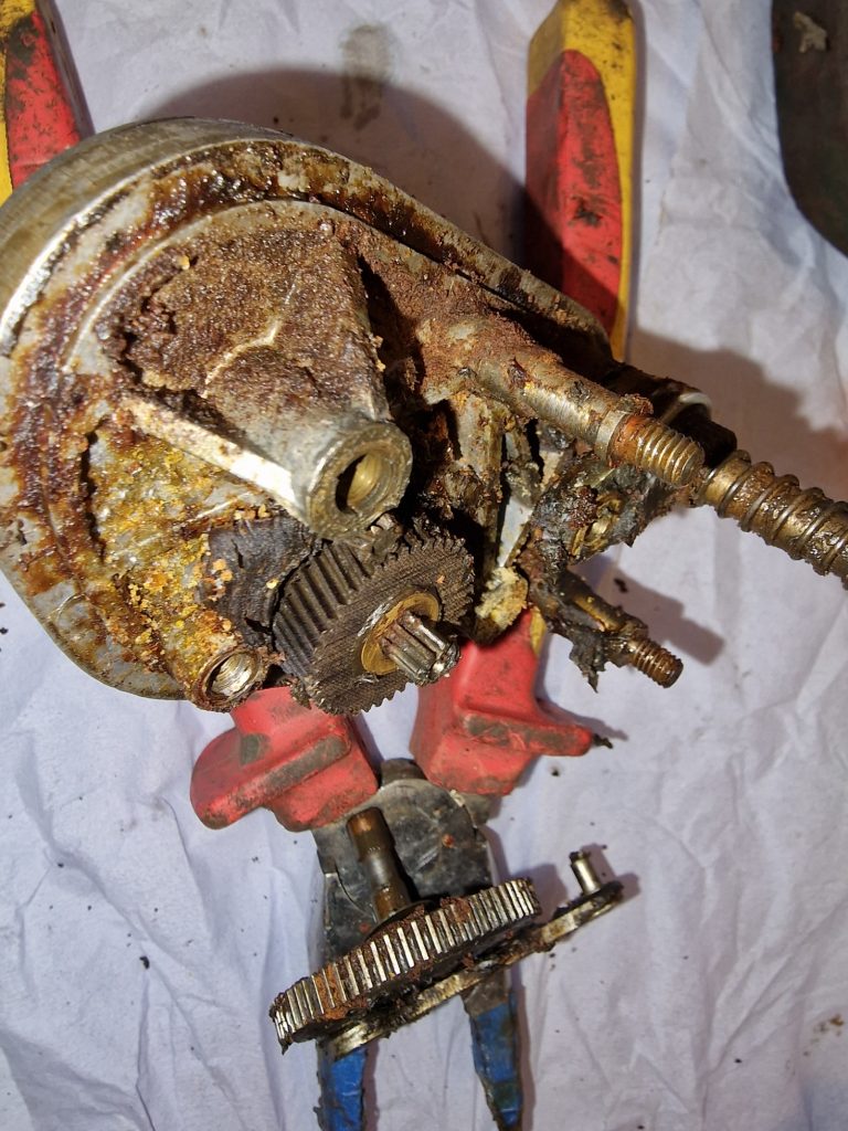 So, lets get to it. The images below show what I had to work with. 1st issue, neither of them actually worked, and it soon became obvious why.. Seized up, rust and lots of almost solid grease. Fortunately, after taking them apart, I tested the motors and they both worked, so they are good, as such, they are both serviceable.