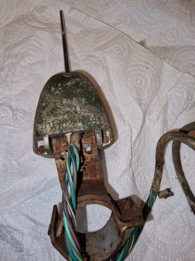 In the images above, left to right, the unit as it came off the Land Rover, not pretty, painted case, worn cables, rusty bracket. The next is the inside, showing the switch, and the remains of a bulb, which I have to say took me a while to figure out what it was! The last image shows the rubber surrounded wheel, which had started to disintegrate. This wheel runs on the outer case of the steering wheel, so when to centralise the steering, it rotates this wheel, turning off thee indicator. Simple but effective.