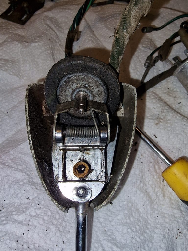 Cleaned up the bracket and painted them a nice shiny gloss black, re-assembled and re-wrapped the cable with a cloth wrap. Not exactly the same as original, but pretty close.
