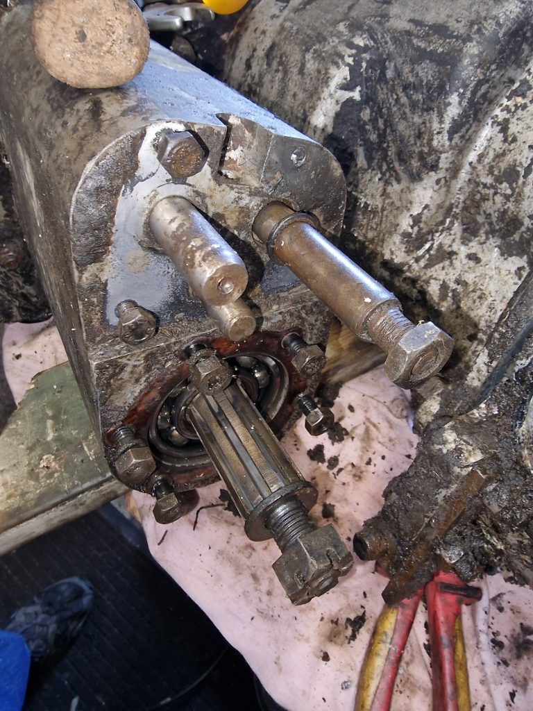 This was all separated from the transfer box, allowing all the inner workings to drop out, well nearly, a couple of other bits from the top of the transfer box had to be removed first (the bolt holding the selector fork and a plunger for transfer selector shaft, sorry, no pics of those either, will get some when they get put back together).