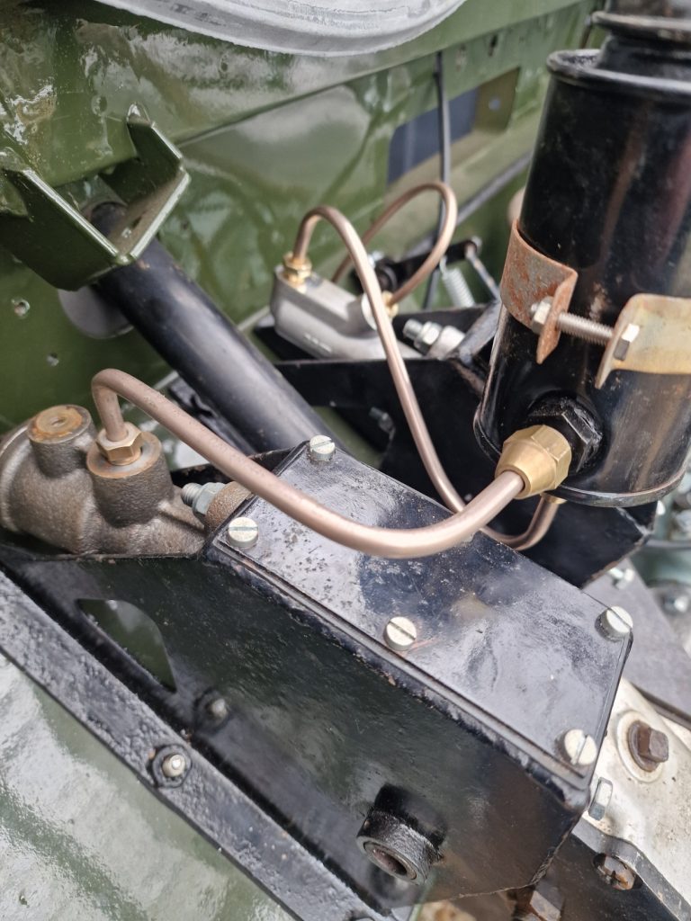 Then onto the Brake pipe from the master cylinder to the fluid reservoir. I kept all the old pipes, so used them as a pattern. I checked online for the correct routing, and this seems the best, most common, and in any case, I had already started bending the pipe’s a while ago.