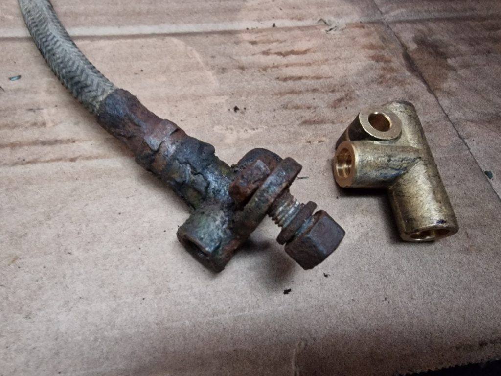 I didn’t buy everything new, there are two brass connectors, this one (The cruddy looking one) shows one (the clean one I didn’t actually need) and another which is a 5-way connector. I cleaned these up and treated them to a bit of etching clear coat to keep them looking good.