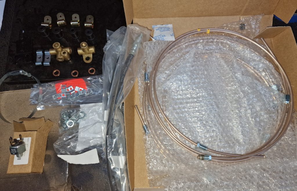 Last time I re-fitted a new front axle case and added all the brake cylinders for each of the wheels, this time I fitted the brake pipes. So, need to get my wallet out again and buy some new parts. This is a snapshot of what I got. I am staggered each time I buy parts, whether new or second-hand, the smallest parts are stupidly priced for what they seem to be!