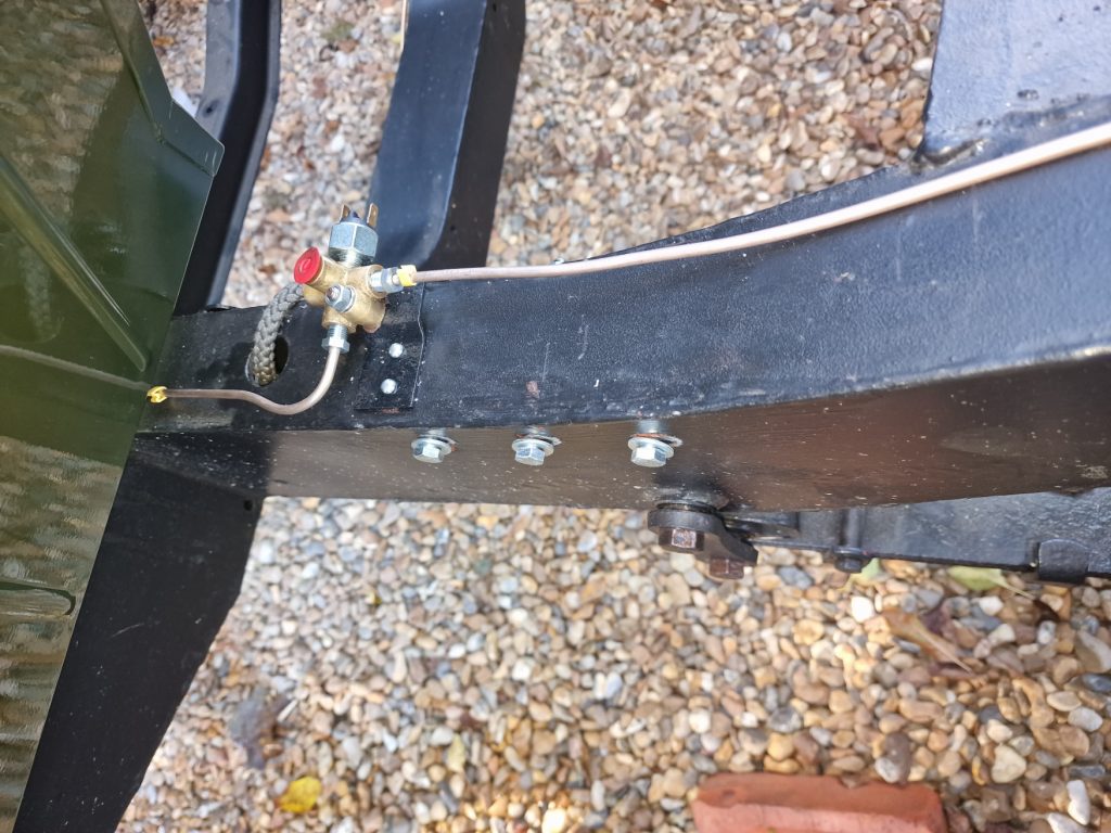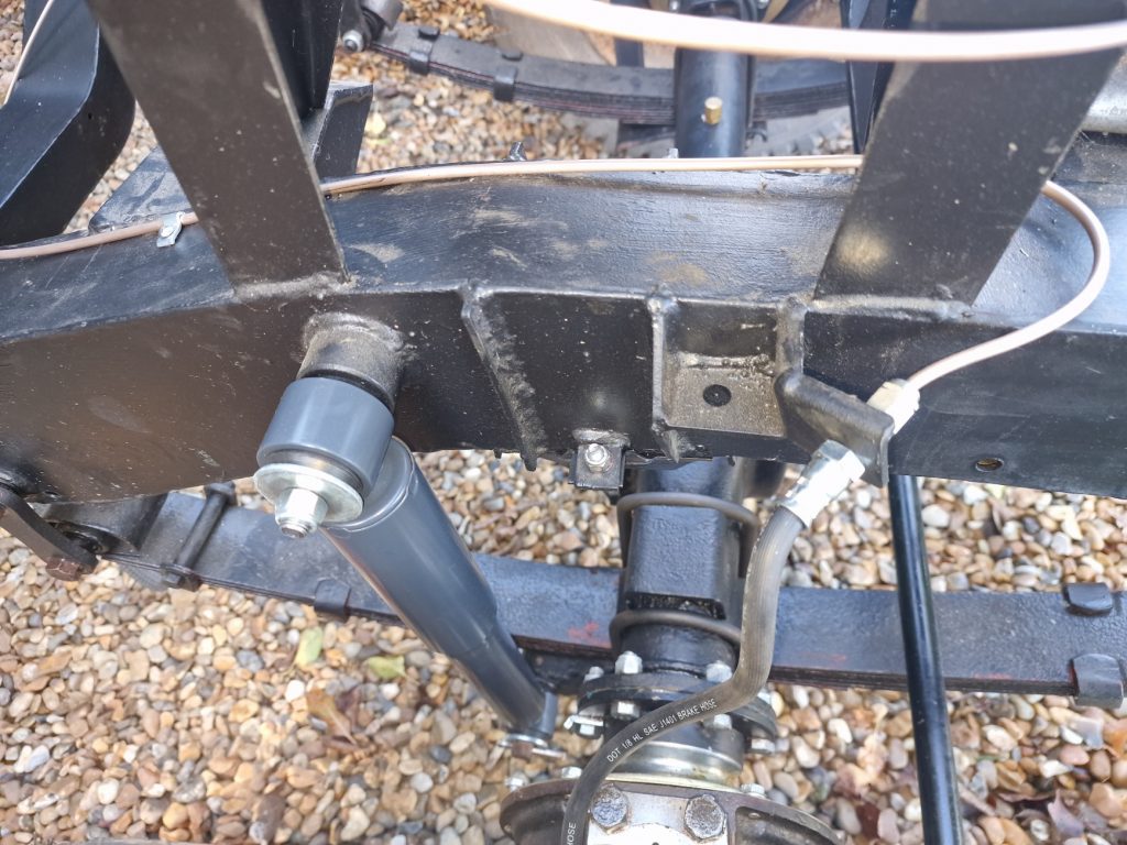 First off was to get the pipes across the back axle. A 3-way connector was bolted to the axle case and gently routed the pipes from the connector to each of the wheels, using P-clips and grommets to support them as necessary.